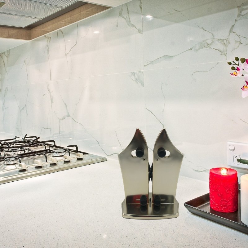 Perfecto para ser exhibido en la encimera, gracias a su diseño elegante y moderno, sin duda se adaptará a su hogar. Una toalla húmeda es todo lo que necesitas para limpiar el afilador.