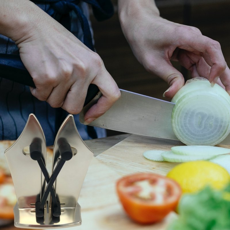 ¡Pasa la hoja del cuchillo entre los dos brazos unas cuantas veces y tu cuchillo estará afilado!