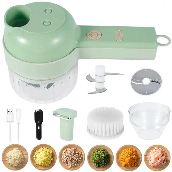 Esta Picadora Multifuncional 4 en 1 te permitirá cocinar de manera rápida y eficiente, reemplazando tu tabla de cortar y cuchillos tradicionales. Ahorra más del 80% del tiempo en la cocina con sus cuchillas de acero inoxidable intercambiables.