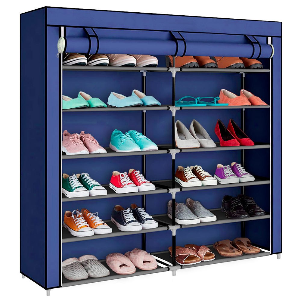 Organiza tu colección de zapatos de manera eficiente y con estilo utilizando el zapatero de tela azul de 6 niveles.